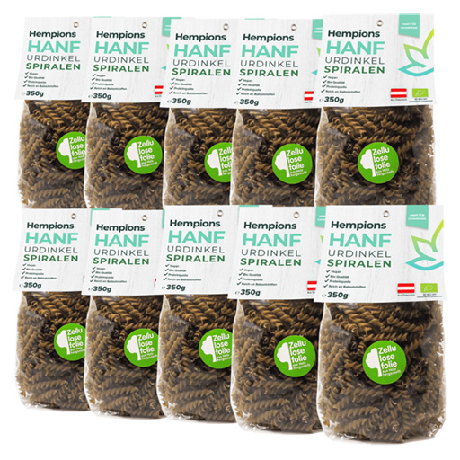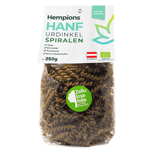 Die Hempions lieben ihre Hanf Spiralen vor allem wegen des leicht nussigen Geschmacks und dem besonderen Biss. Dafür sorgen die Schalenanteile des Hanfmehls. Hanf Urdinkel Spiralen passen sehr gut zu einer kräftigen Sauce und geschmackvollen Kräutern. Viele leckere Rezepte, wie zum Beispiel die Hempions Carbonara, findest du in unserem gratis Rezept E-Book.