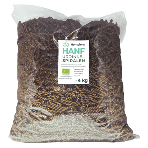 Bio Hanf Urdinkel Spiralen sind vegan und weisen keine berauschende Wirkung auf. Enthalten Gluten (Dinkel).