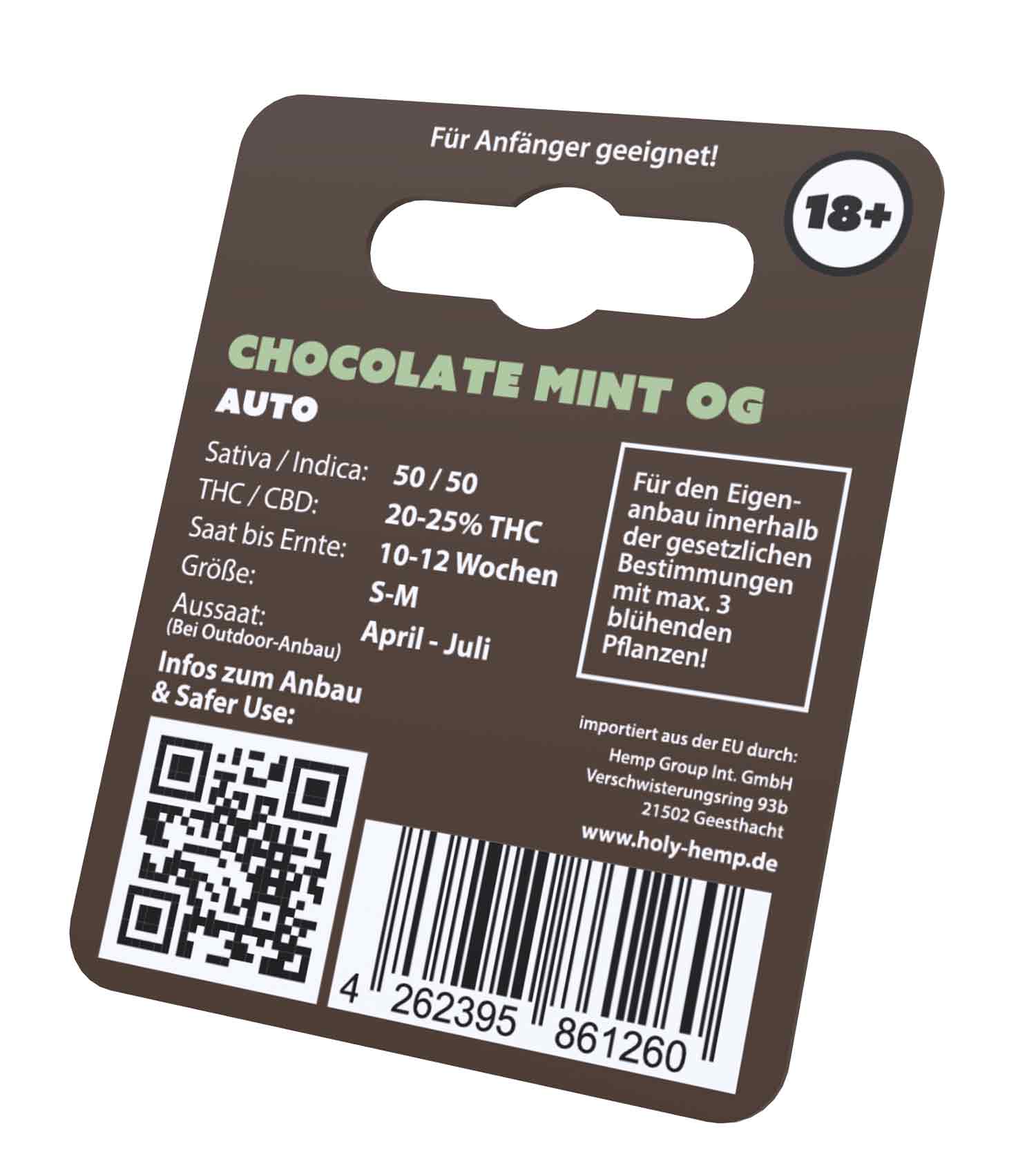 Bitte beachten Sie, dass der Kauf von Chocolate Mint OG Cannabissamen erst ab 18 Jahren möglich ist. Die Volljährigkeit wird bei Zustellung durch DHL überprüft.