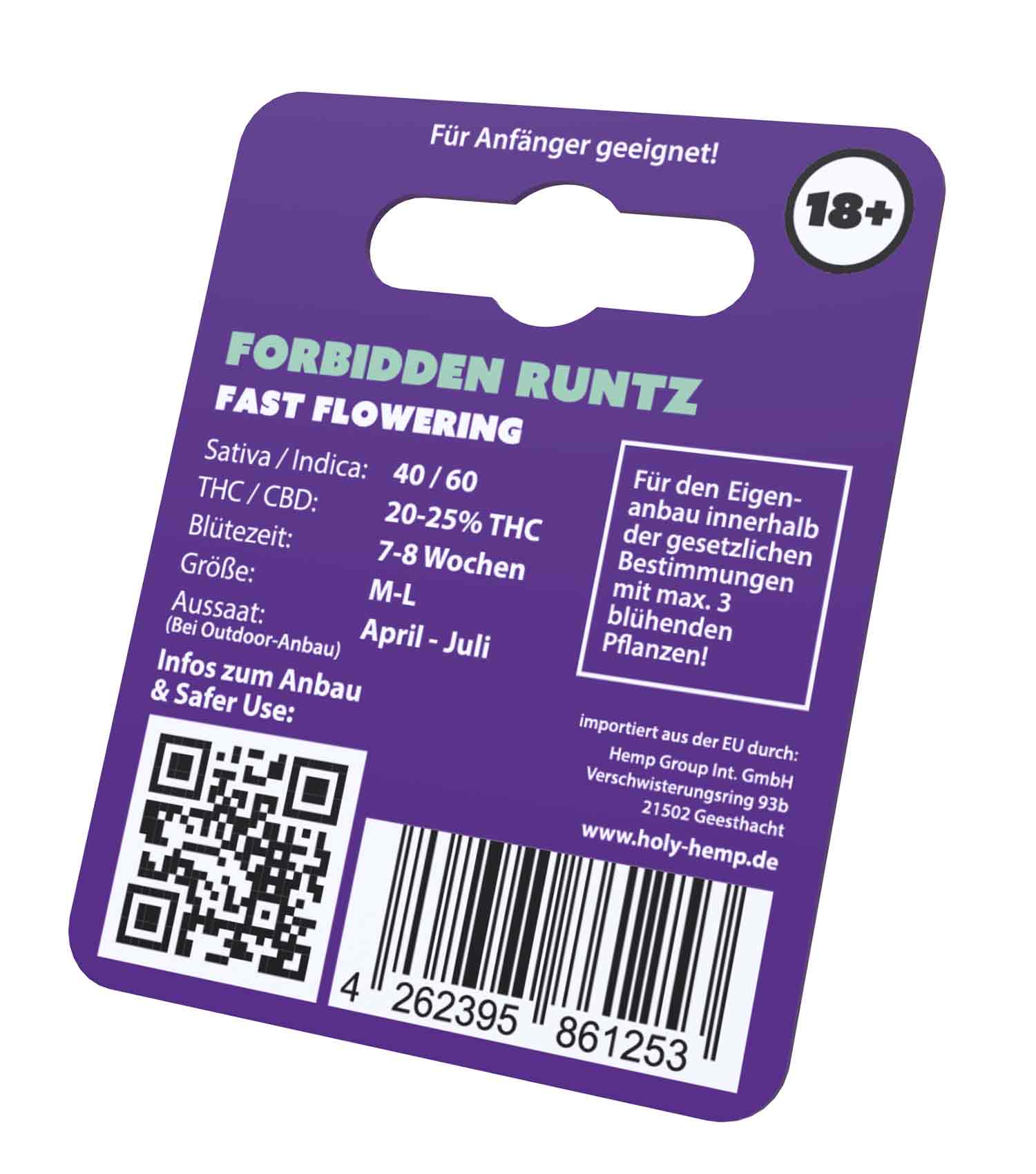 Bitte beachten Sie, dass der Kauf von Forbidden Runtz Cannabissamen erst ab 18 Jahren möglich ist. Die Volljährigkeit wird bei Zustellung durch DHL überprüft.