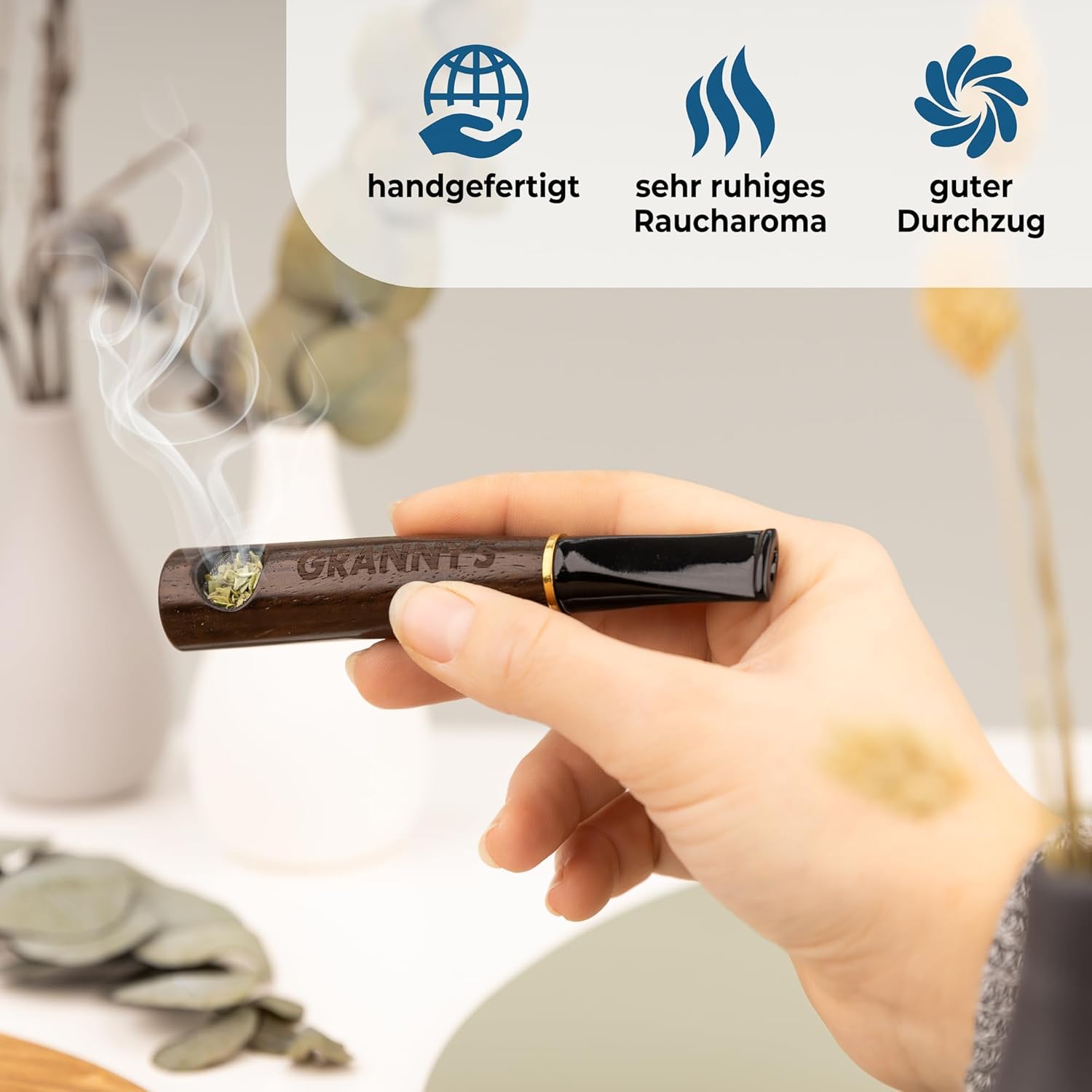 Entdecken Sie mit Granny's Premium Holzpfeife das ultimative Raucherlebnis. Diese edle Pfeife bietet dank der hochwertigen 9mm Aktivkohlefilterung ein unvergleichlich reines und sanftes Rauchgefühl. Die perfekte Kombination aus traditionellem Nussbaumholz und fortschrittlicher Filtertechnik sorgt für einen unverfälschten Geschmack bei gleichzeitig reduzierter Schadstoffaufnahme.