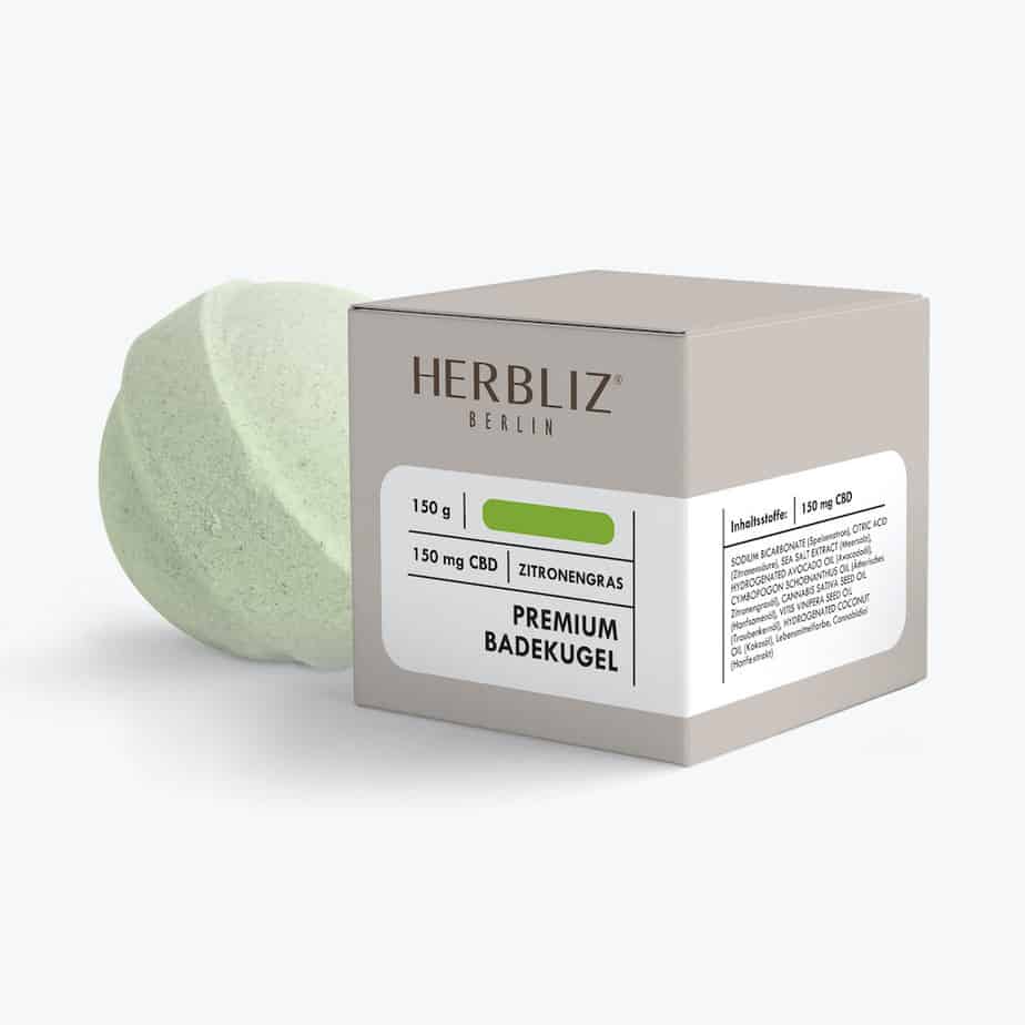 Herbliz - CBD Premium Badekugel - CBD Kosmetik (150mg) CBD - 150g Zitronengras
