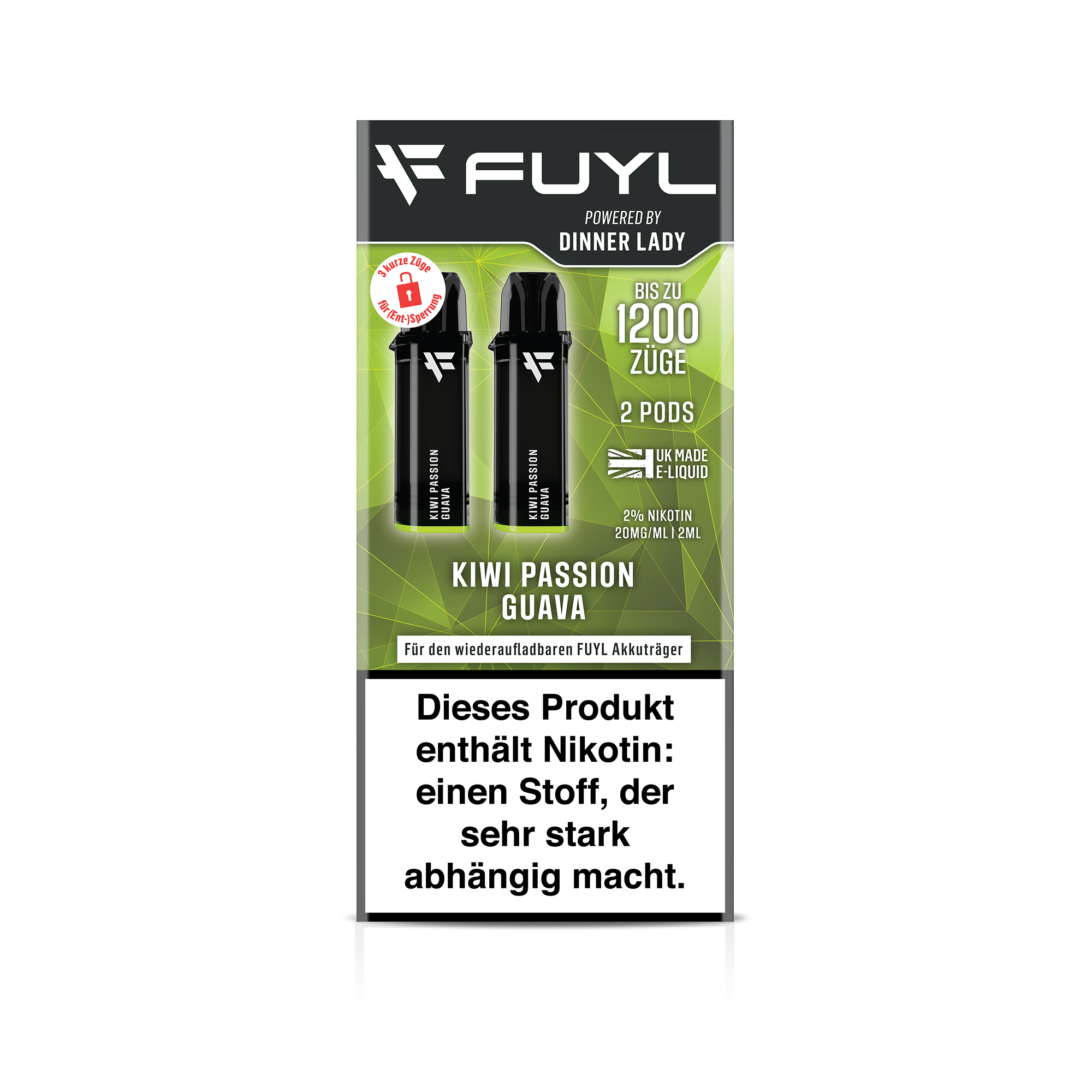 Diese Packung enthält 2x vorgefüllte FUYL Austausch-Pods mit jeweils 600 Zügen (insgesamt bis zu 1.200 Züge). Die Austausch-Pods sind ausschließlich kompatibel dem original FUYL Battery Device (Powered By Dinner Lady). Diese Packung enthält die einzigen Austausch-Pods, die mit Kiwi Passion Guava Dinner Lady E-Liquid vorgefüllt sind. Die Pods sind ideal für neue und erfahrene Dampfer gleichermaßen.
