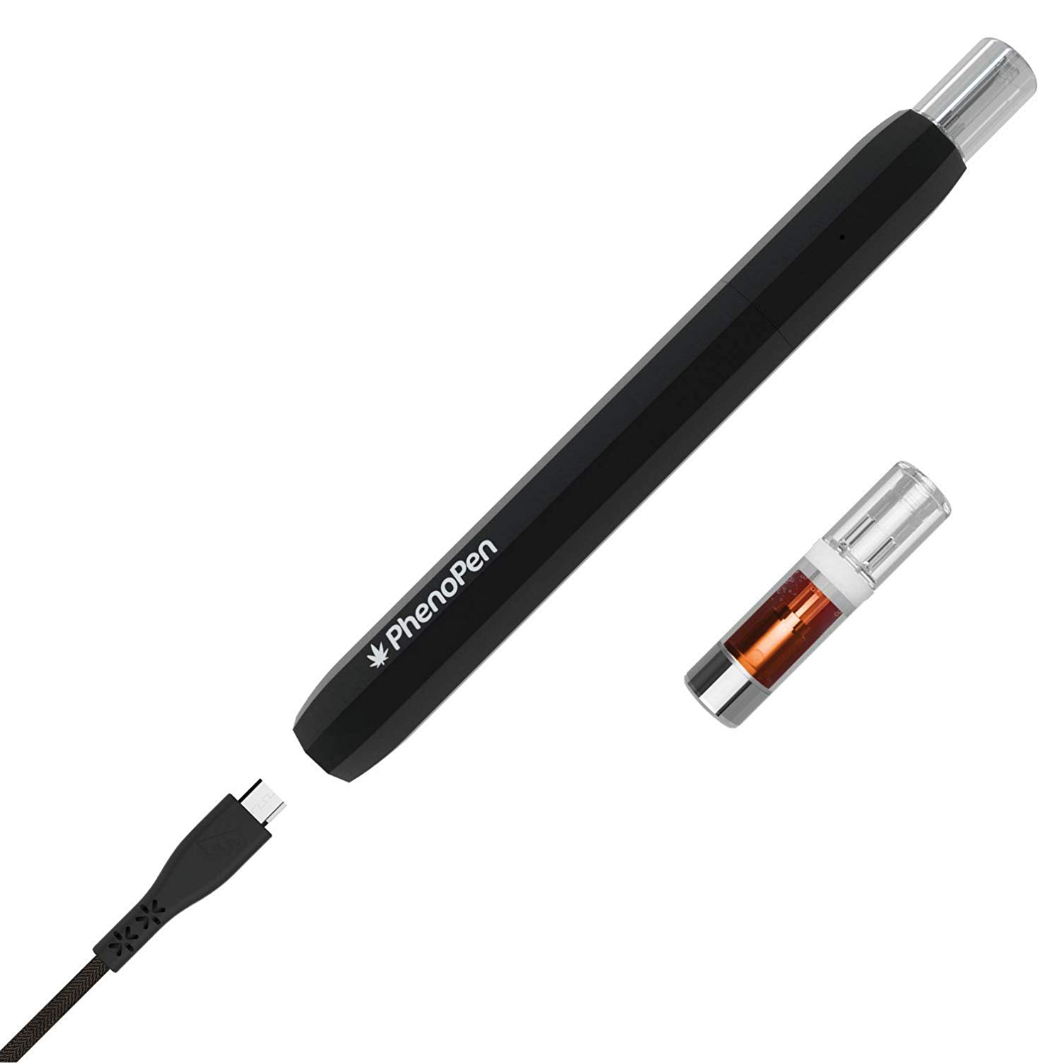 Der PhenoPen verfügt über eine elegante und hochwertige Verarbeitung und besteht aus einer Batterie, einem Verdampfer, einem passgenauen Mundstück und einer austauschbaren Kartusche. Jedes Gerät wird mit einer Kartusche geliefert, die 0,5 ml reinen CBD-Hanfextrakt enthält.