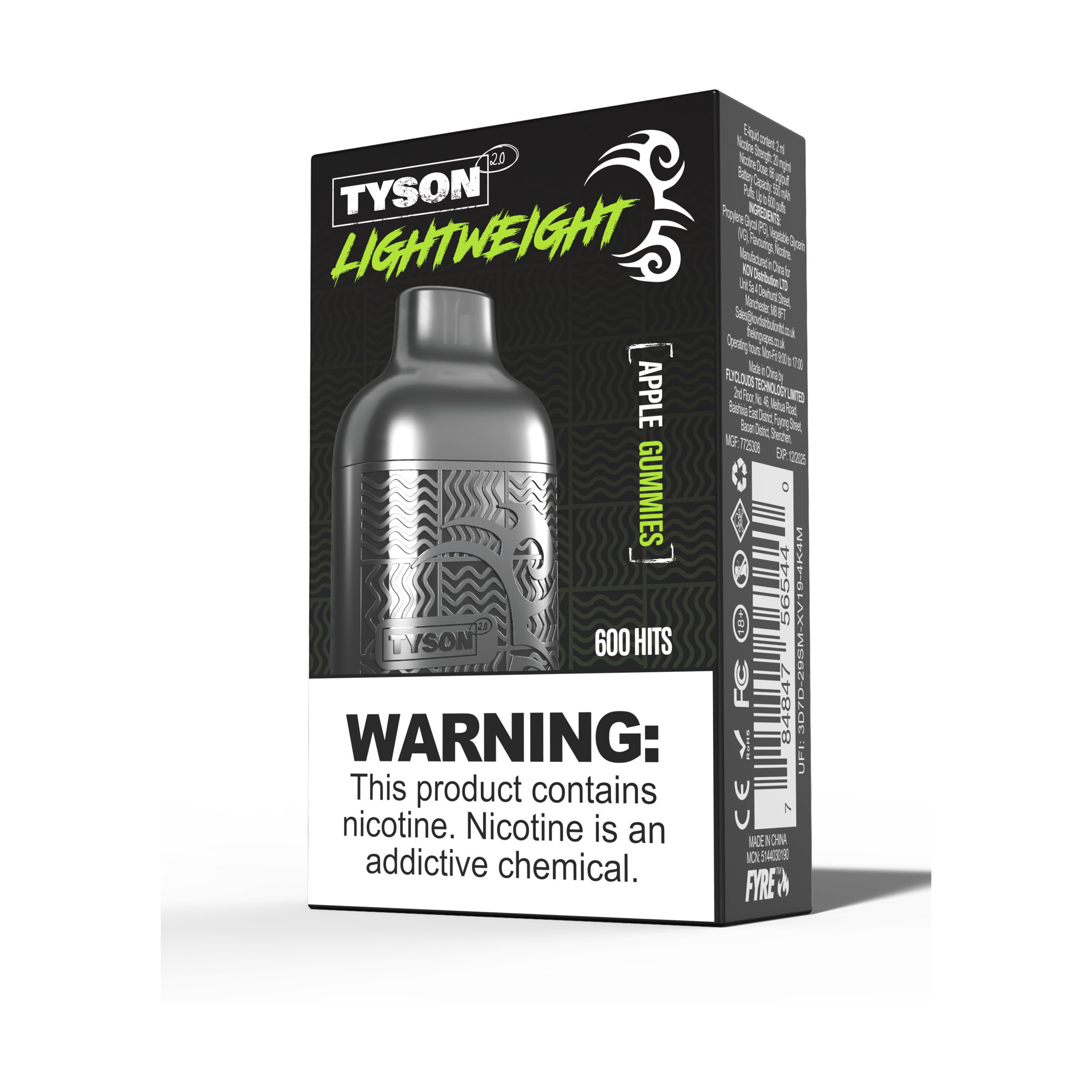 Mach Dich bereit, Deinen inneren Champion zu entfesseln mit Tyson 2.0 Lightweight Green Apple Disposable Vape.