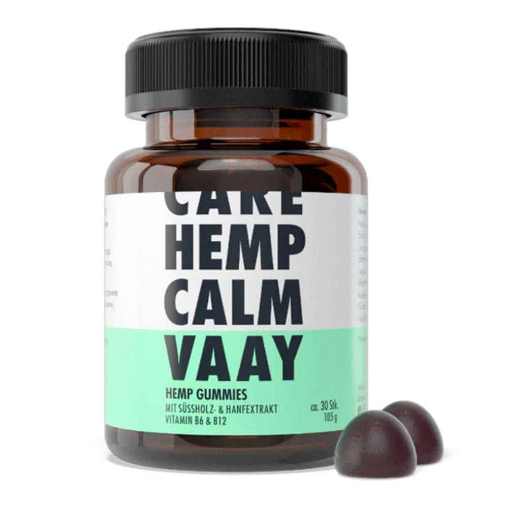Die leckeren, leicht lakritzig schmeckenden Hanf Vitamin Gummibärchen von Vaay enthalten neben einem Extrakt aus dem vollen Spektrum der Hanfpflanze, die empfohlene Tagesdosis an Vitamin B6 & B12. Laut Hersteller unterstützen die rein natürlichen Inhaltsstoffe sowohl Immunsystem als auch Nerven. Die Kombination aus Hanf- und Süßholzextrakt schmeckt nicht nur einzigartig, sondern sie beruhigt auch einen nervösen Magen.