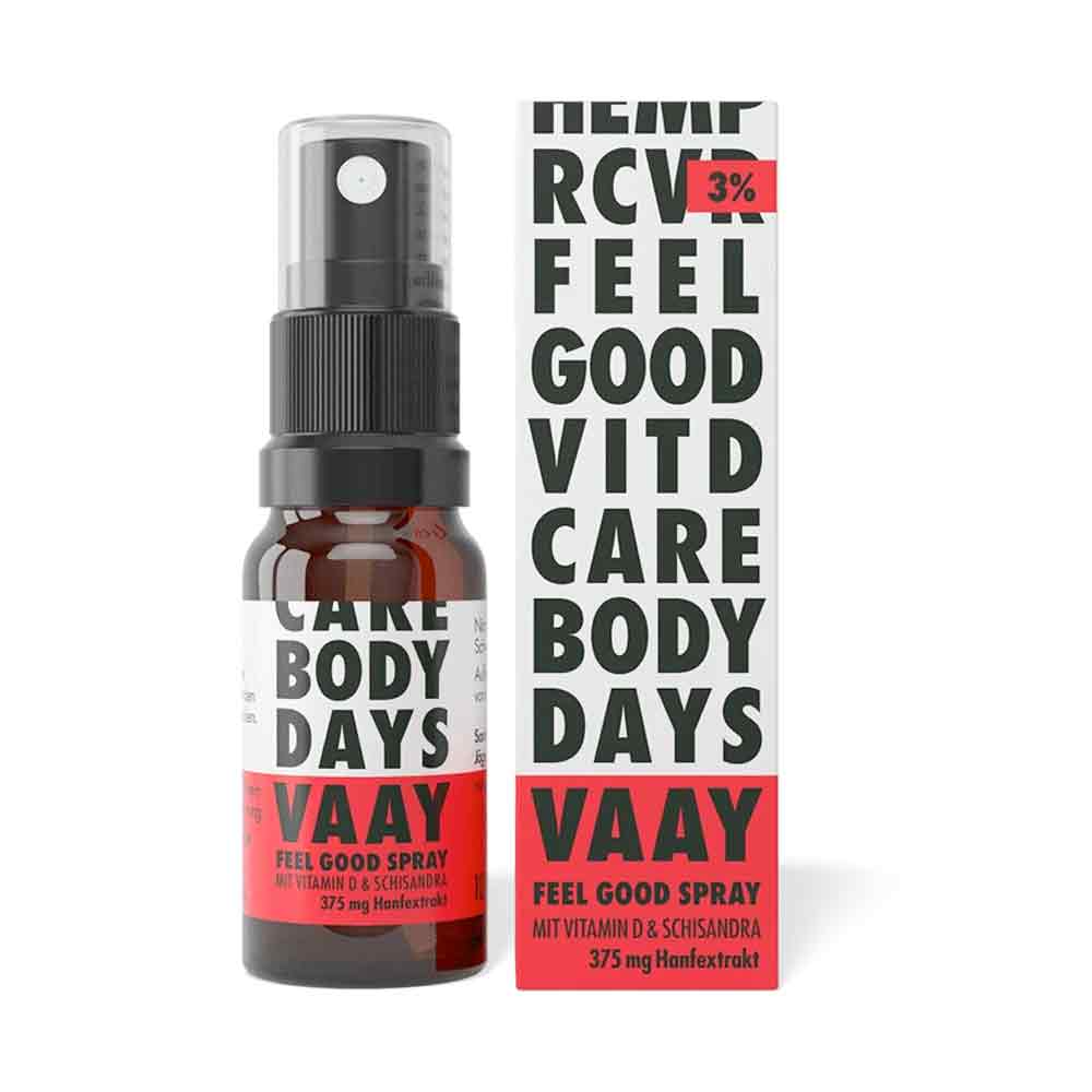 In der 10ml-Pumpflasche des Feel Good Mundsprays von VAAY sind insgesamt 375mg Cannabidiol enthalten.