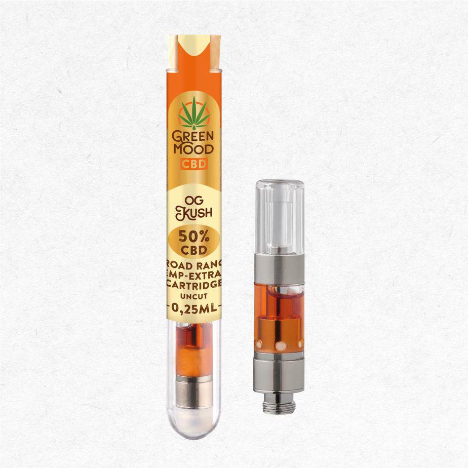 Hochreines CBD Extrakt zum Inhalieren mit der E-Zigarette: Möglich ist dies zum Beispiel mit der Green Mood CBD Liquid 50 % Kartusche von XEO. Die Kartuschen sind mit 0,25 ml Uncut Broad Range Hanfextrakt befüllt. Das bedeutet, dass sie frei von chemischen Zusatzstoffen sind und ausschließlich organische Inhaltsstoffe enthalten, allen voran natürlichen Vollspektrum Cannabidiol Extrakt mit natürlichen Terpenen. Es ist weder VG (pflanzliches, vegetables Glycerin) noch PG (Propylenglycol) enthalten.